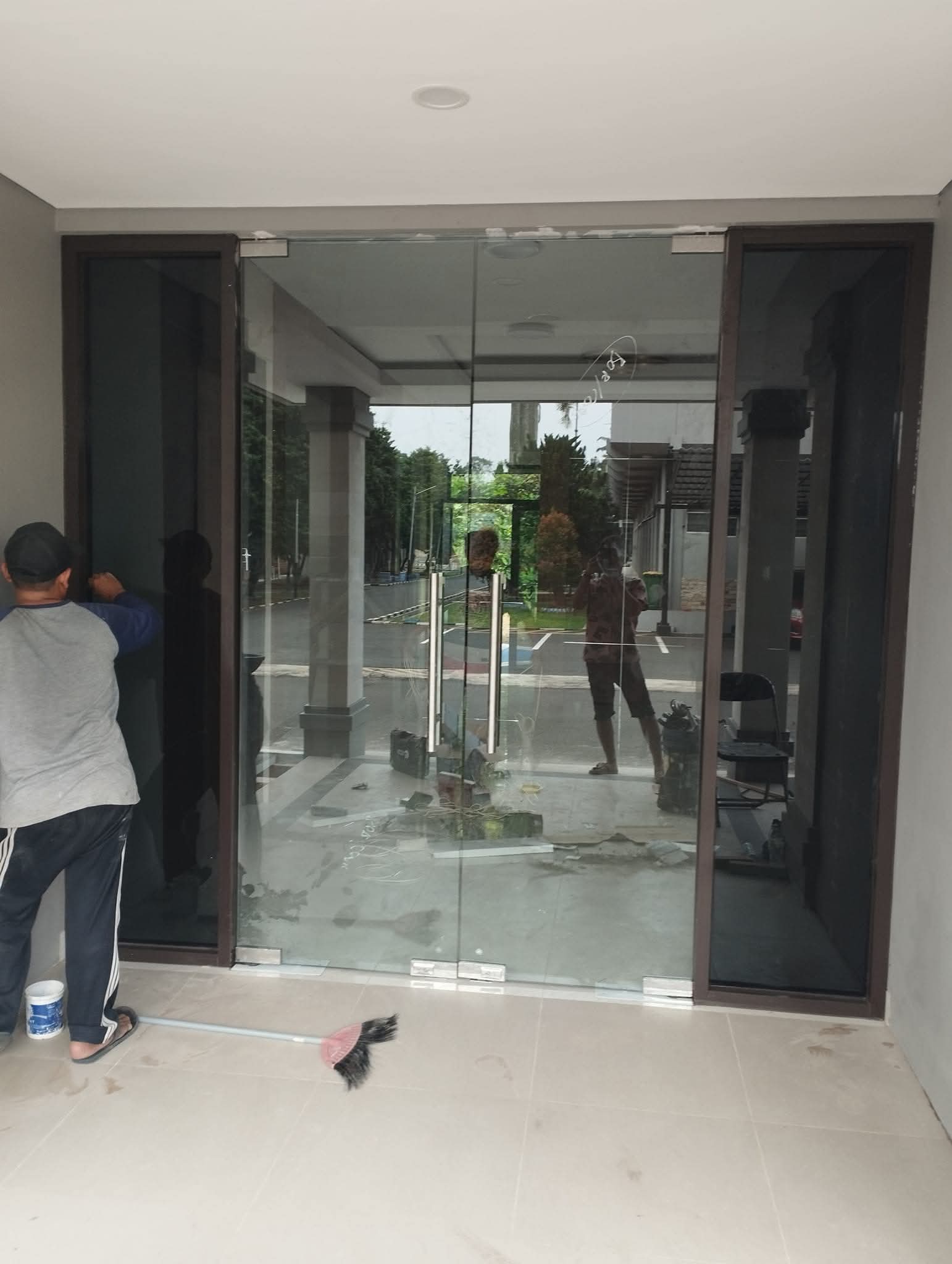 Kami melayani pemasangan pintu frameless dengan berbagai tipe seperti floorhinge, sliding, maupun folding. Pintu frameless memberikan tampilan modern dan elegan tanpa bingkai, sehingga ruangan terlihat lebih luas dan minimalis. Instalasi dilakukan secara profesional dengan memperhatikan presisi dan keamanan, baik untuk pintu kaca yang digantung, digeser, maupun dilipat sesuai kebutuhan desain interior Anda.