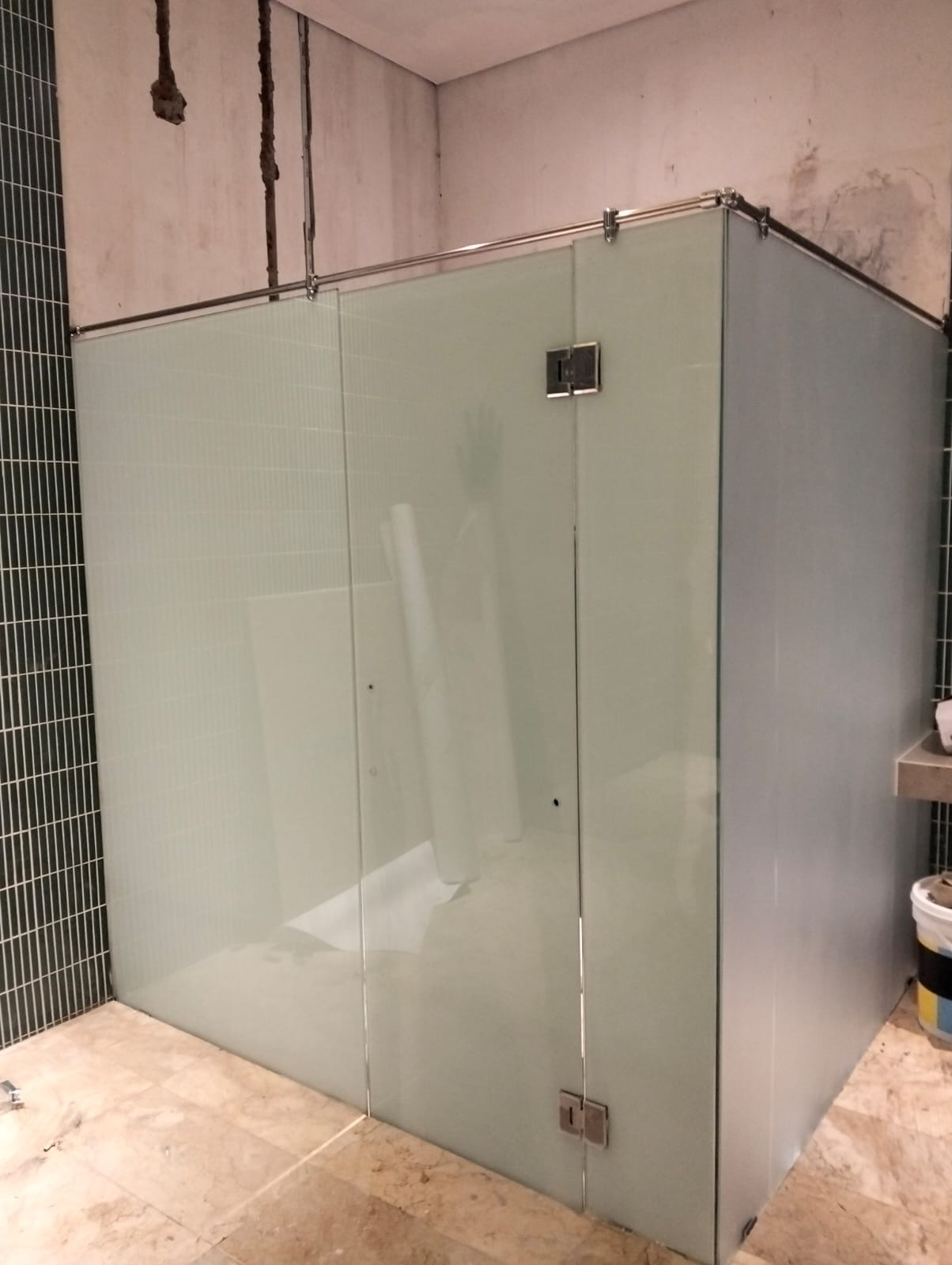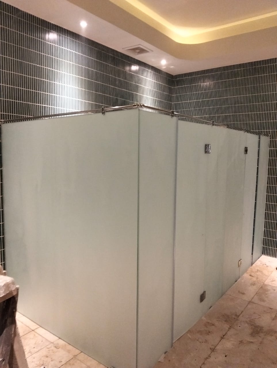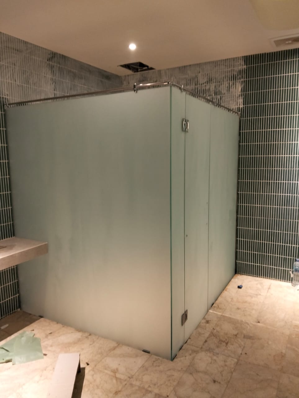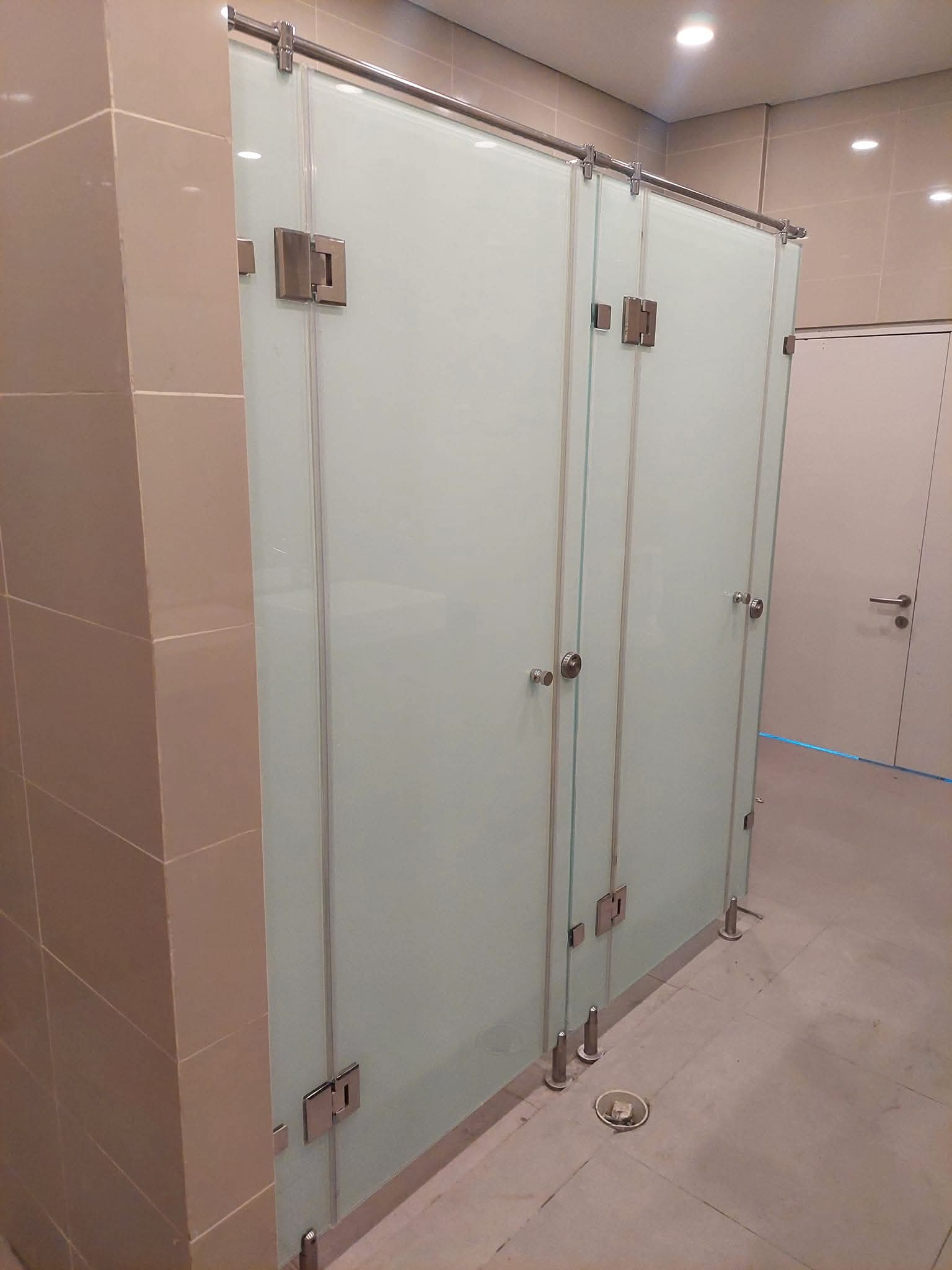 Pekerjaan instalasi kaca pada cubical toilet meliputi pemasangan panel kaca sebagai pembatas antar ruang toilet untuk menciptakan area yang privat, bersih, dan modern. Proses ini dilakukan dengan menggunakan kaca berkualitas tinggi yang tahan terhadap kelembapan dan mudah dibersihkan, serta rangka aluminium atau stainless steel untuk memastikan kekuatan dan keamanan. Instalasi dilakukan secara presisi agar hasil akhir rapi, kokoh, dan sesuai dengan desain interior, sehingga memberikan kenyamanan dan estetika pada fasilitas toilet.